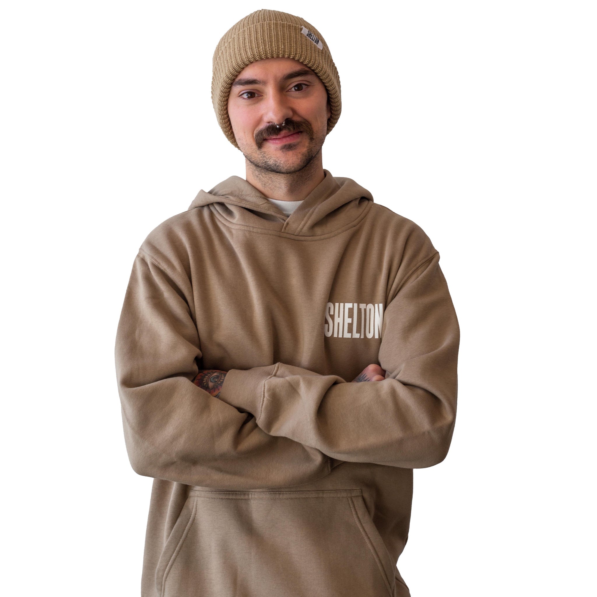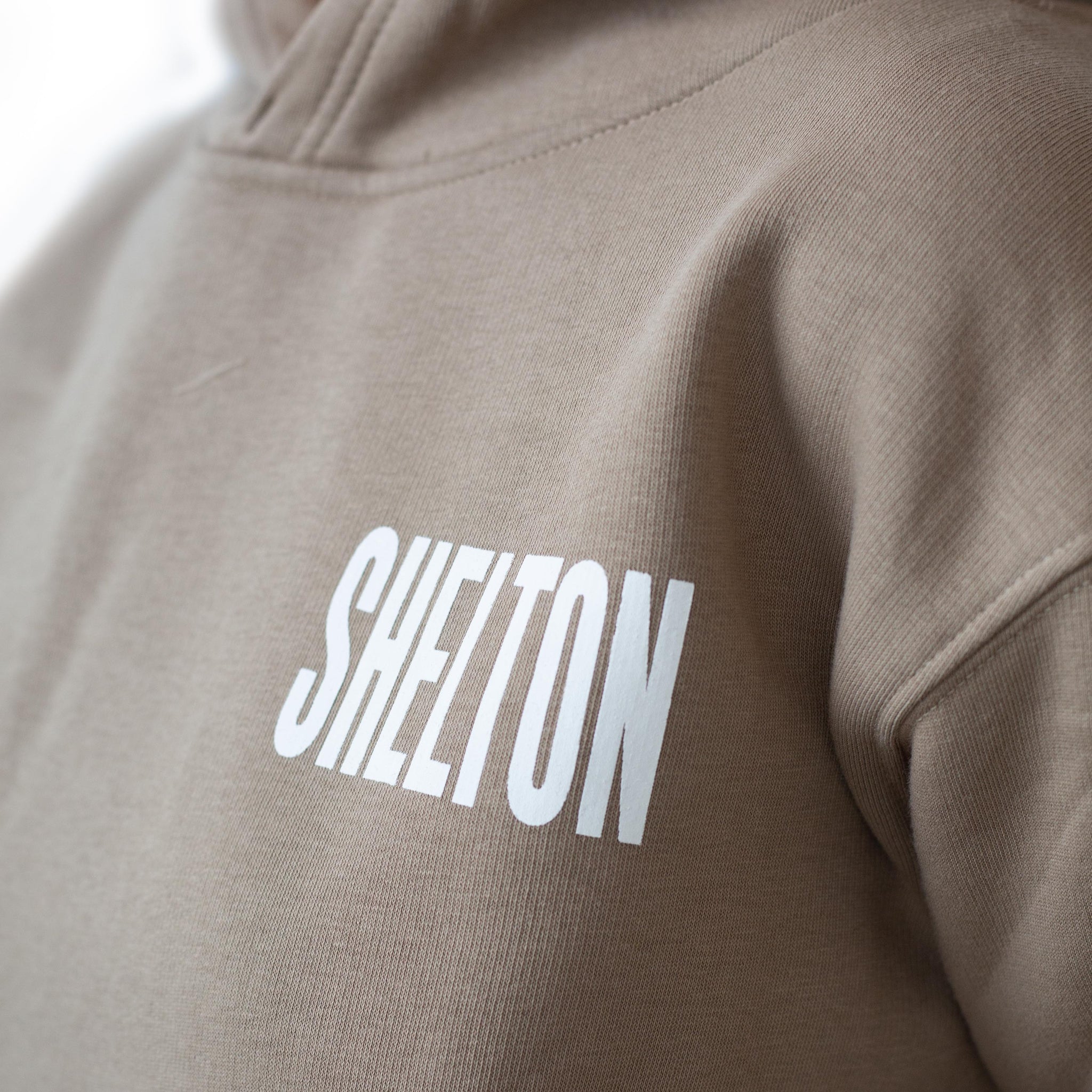 White round logo printed on the front, white SHELTON stretched logo printed on the back